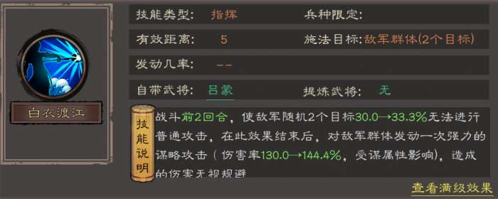 • 定位:控场+谋略输出技能,梯度T0级(吕蒙核心招牌技能)