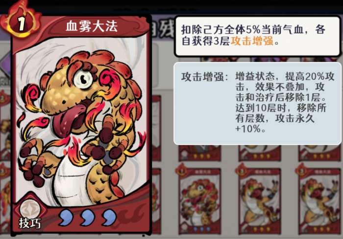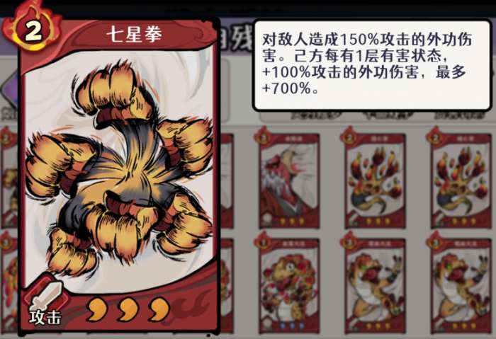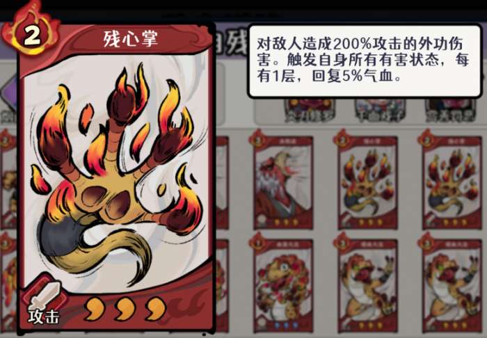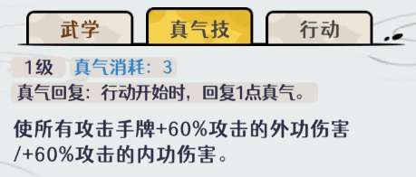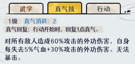 专属卡牌「气血连衡」在治疗的同时也进行了一次自残。真气技为卡牌增伤,神兵被动为卡牌减怒,都是十分通用的技能。
