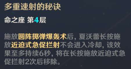 天赋2:有超量弹头时,4w血吃满40%加攻击(相当于给主C加的攻击力词条,与夏沃蕾基础攻击无关)