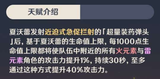 天赋1:锁雷火配队时,超载获得40%雷火减抗,但因为自身不带有脱手技能;