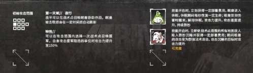技能开启时,立刻获得一定部署费用,眠兽进入休眠,休眠期间每秒恢复一定生命;