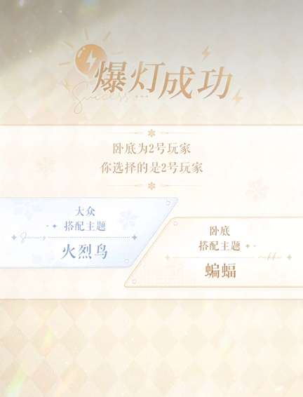 说到积分,在游戏过程中你还能使用“爆灯”功能,这是你提前指认卧底的机会。爆灯一旦启动,你就能直接选出一位你认为最可疑的玩家进行挑战。如果指认正确,你将获得额外的积分奖励。如果失败,那么你也不会一无所获,至少还能获得一些活动积分。不过,爆灯功能并不是随时能用的,每个玩家只有一次机会,得慎重操作哦。