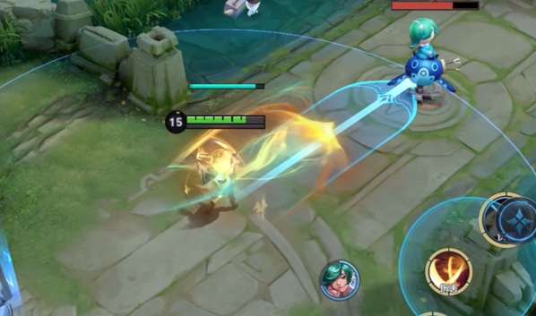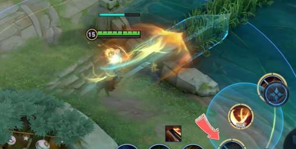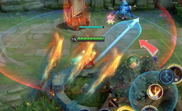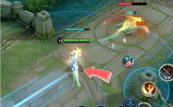 此外,二技能的移动方向受技能指示器方向影响,所以我们可以先向前使用二技能,当打出第一道剑气之后立刻把二技能的方向向后拉,当我们的角色向后移动一步之后,再迅速把技能拉向前方,向前打出伤害之后再向后拉,以此重复直到四道剑气打完。