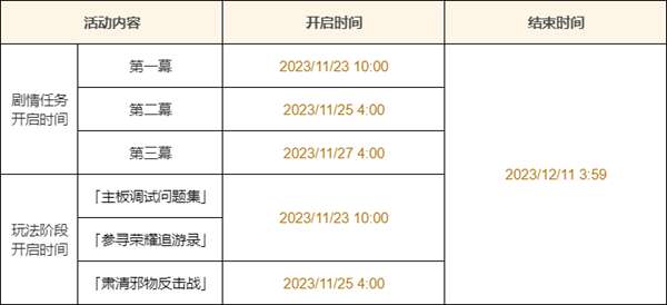 ● 活动期间,将陆续解锁「主板调试问题集」、「参寻荣耀追游录」、「肃清邪物反击战」各阶段玩法。