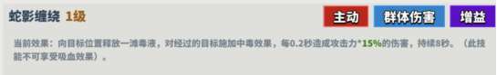 特点:每次攻击都会对敌人造成持续伤害。这种高概率的效果让技能在每次普攻时都能触发中毒,确保了持续的伤害输出。