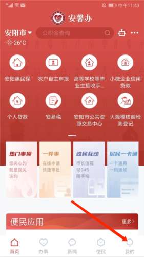 1、打开安馨办app,进入应用主界面,选择右下角【我的】选项,