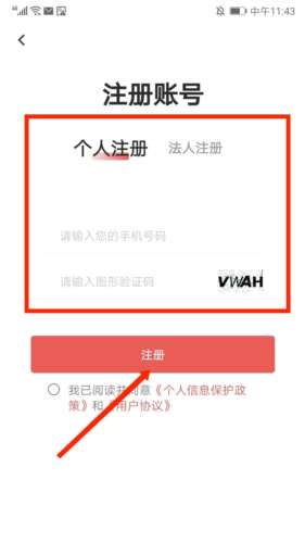 3、进入【注册账号】界面,分为个人注册和法人注册,用户可根据需求选择相应的类型进行注册。