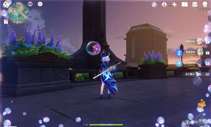 芙宁娜的元素爆发持续时间很容易辨认,因为在持续时间内,我们的屏幕界面周围会有泡泡的特效。