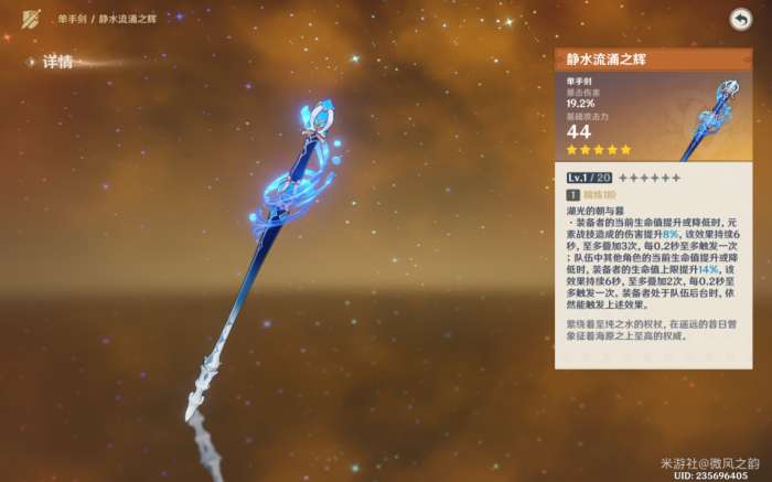 即使没有专武,绿剑也是不错的选择。这种武器同样可以提高芙芙的暴击率和爆伤,而且特殊效果还能增加生命值。