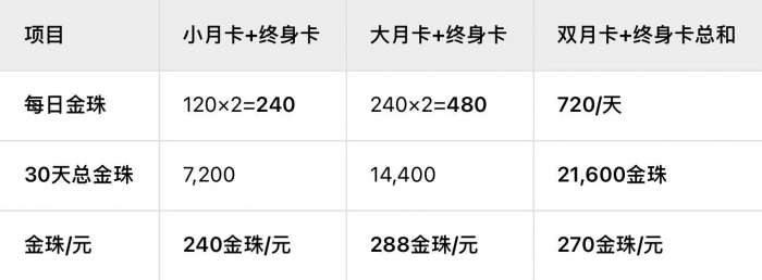 若单算大月卡的状态下,更是可以达到恐怖的288金珠/元!碾压一切!