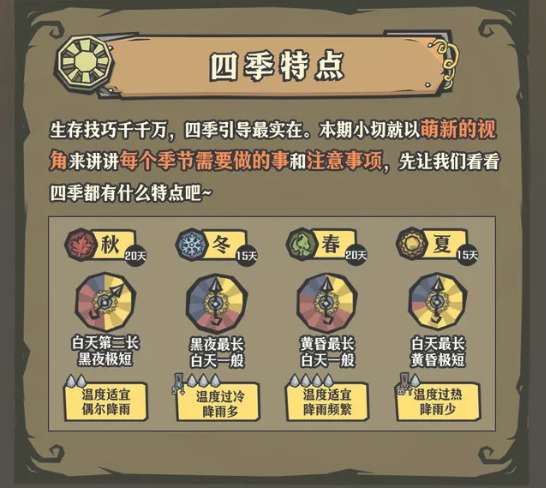 软件提交 专题合集 热门手游《饥困荒野》中,四季轮转各具特色与挑战,深刻影响着玩家的生存策略。为应对不同季节的潜在危机,玩家需提前规划。下面给大家带来了饥困荒野四季生存手册,包含每个季节需要做和注意的事项介绍!