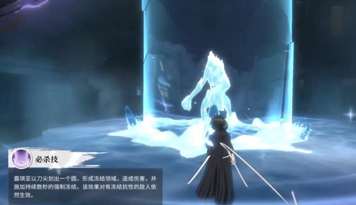战技2则将团队协作的优势发挥出来,队伍中的任意队友只要攻击的目标身上原来有冻结效果在生效,那么收到的这一次攻击还有额外的数值增加百分比,且输出后还会继续给该目标进行标记,这个标记就类似于累计的负面效果,随着战斗的持续进行当标记累计达到3格时,她会直接施展强大的魔法力量,将所有的敌人都冻结起来,而在她所创造的这片冰雪领域中,任意的队友发动攻击时,她都能迅速做出反应,进行一次连携攻击,攻击过后,还会继续为敌人添加冻结值,所以从这里大家就可以看出来其实朽木露琪亚的对战当中这个冻结设定才是最重要的。