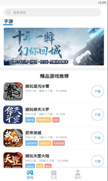 顺玩传奇盒子是一款受欢迎的免费游戏助手,拥有全面的游戏榜单,可以自由关注各种热门且受欢迎的游戏,方便用户轻松下载体验有趣的游戏内容,还能轻松获取各种传奇游戏的开服信息和礼包,轻松自由领取来获得各种福利,给用户带来精彩的游戏对局,还具有全新的游戏搜索方式,可以直接输入游戏名称来搜索查找,自由呈现最新的游戏资源,随时随地自由管理各种好玩的游戏。