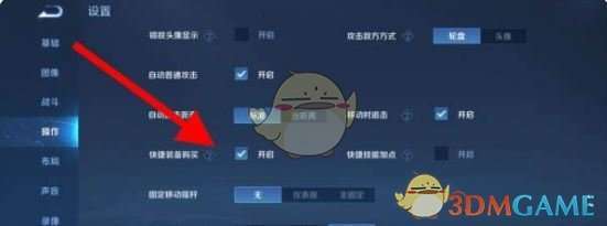2、在此区域,寻找到快速购买装备的设置,并勾选旁边的复选标记以取消自动装备购买功能,如图所示。