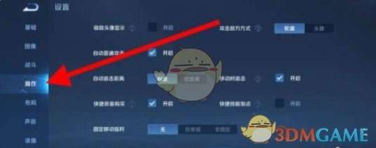 1、访问游戏设置界面后,请依照图中指示,轻触左侧的操控区域。