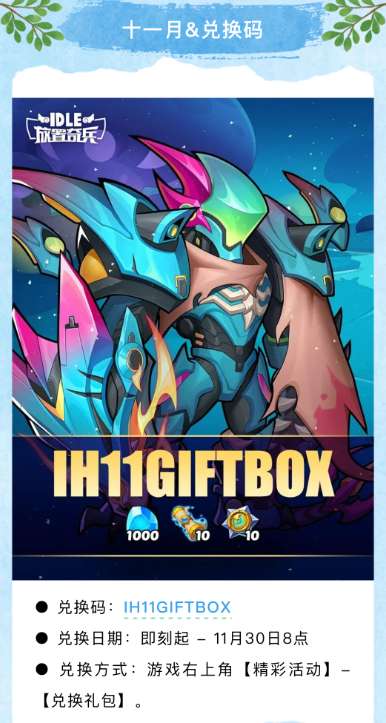 软件提交 专题合集 热门手游《放置奇兵》2025年11月福利兑换码已送达!最新可用兑换码【IH11GIFTBOX】请速领取,内含丰厚游戏资源,助你冒险之旅战力飙升。尚未兑换的玩家,切勿错过这一波超值福利!