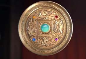 1、【秦王照骨镜】:通体鎏金,玛瑙点缀