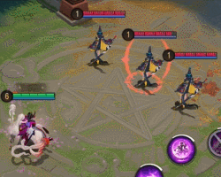 在冥域女王的驱使之下,紫色的螺旋形鬼魂将朝指定方向飞行,对路径上的敌人造成物理伤害,若命中敌方式神,则鬼魂会散向四周,对范围内的敌人再次造成物理伤害。