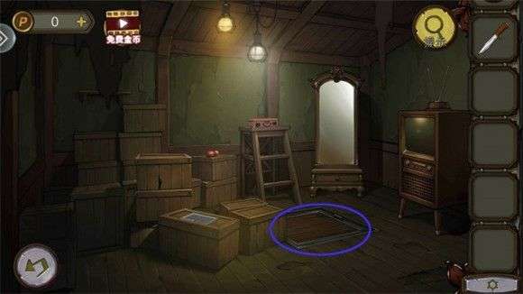 到地下室先点镜子,拿到黑布,黑布到厨房水龙头浸湿,擦镜子。小刀割开苹果拿到电池,箱子机关解开拿到遥控器,电池、遥控器组合打开电视。