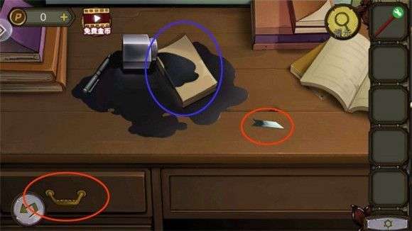 根据台灯和黑板的线索,打开书桌柜子,拿到清洁剂。书桌上拿到刀片,刀片和铅笔组合,涂书得到钟表图。