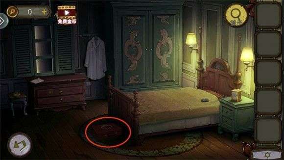 钥匙开左边卧室,开灯。枕头下拿到扳手,扳手打开椅子拿到玻璃刀。