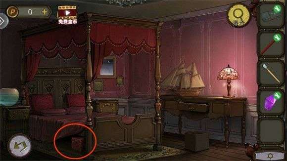 根据墙画上的英文和纸条上的颜色,打开柜子拿到圆片,桌上拿到铅笔。圆片打开右卧的盒子,拿到半块宝石。