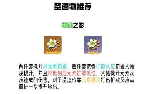 翠绿之影能够提升风元素伤害,四件套效果有还能够大幅增加扩散的伤害。