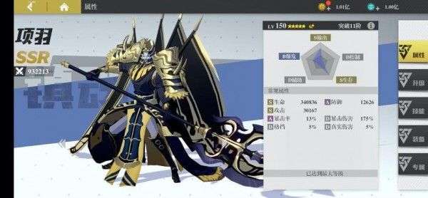 从属性列表中看出,吕布最擅长的是输出和爆发,暴击率达到44%的超高水平