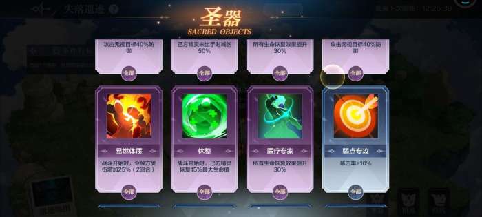 圣器第二章的时候优先选择,医疗专家和修整,这两个见到了都一定要拿,优先拿修整,第三章尽量拿伤害增加,