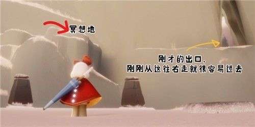 如果你掉下来了,冥想地的位置,就在刚才入口的左边,如下图所示。(PS:面对入口)