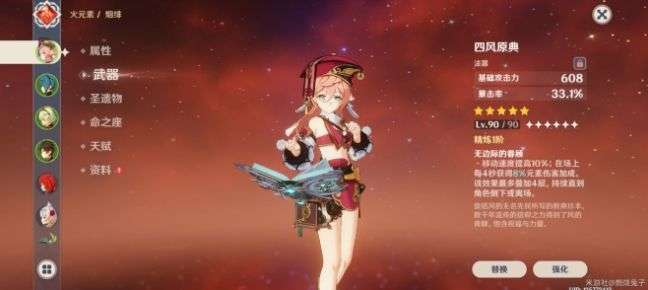 圣遗物推荐:魔女四件,妒火四件,四命或者有持续挂盾工具人可以带流星四件。