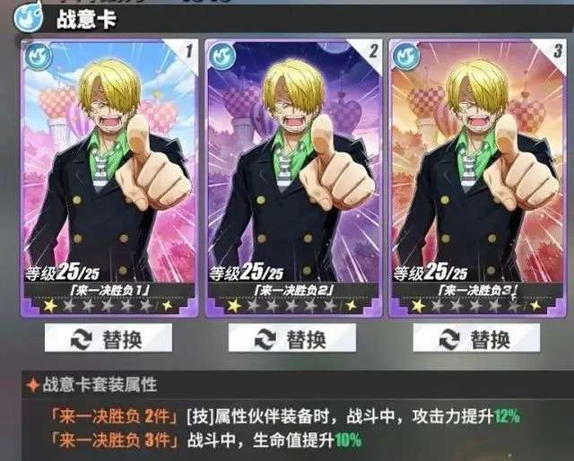 软件提交 专题合集 热门手游航海王热血航线战意卡带什么好?玩航海王热血航线游戏的小伙伴都知道游戏中有一个战意卡系统,其实战意卡相当于是这款游戏里的装备,也有不同的品质,所以许多玩家不知道该如何搭配,下面跟小编一起来看看战意卡的选择搭配攻略。