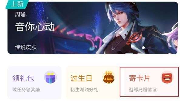 3、在这里,小伙伴们可以点击图示中的“寄卡片”按钮,如此可以进入王者邮局活动;