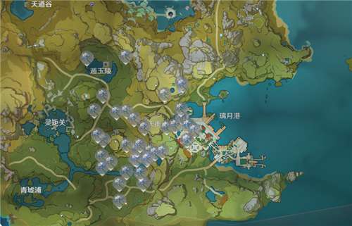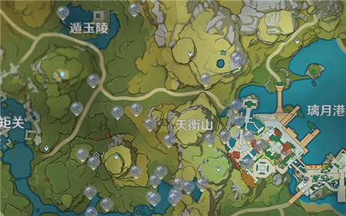 2、遁玉陵-灵矩关-天衡山-璃月港区域(分布最密集)。