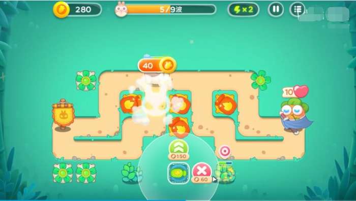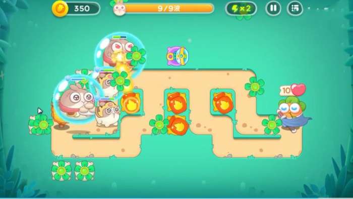 3、左上角也要种一个火瓶开图,这时候多余的金币种一些输出和泡泡在路径四周。