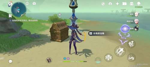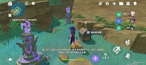 7、完成后再回到雷灵处,跟着雷灵跑,最后雷灵会回到盆景的那个小岛上,还会有一个珍贵宝箱。