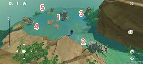 4、继续观察雷灵,右侧是什么山,它就会显示什么顺序(如果右边放了蒙德的山,就会显示风方碑的顺序)。