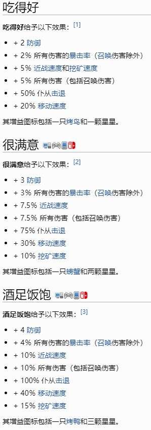 吃饱饭不仅可以让我们无惧饥饿,同时还会给我们带来不小的全属性增益效果。