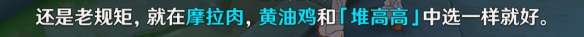 完成方法:选择一个吞金料理给哈特姆,提交摩拉肉,黄油鸡,堆高高三者任一即可