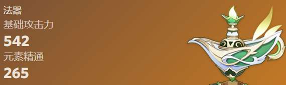 队伍中每个其他角色,都会依据元素类型与装备者相同与否,为装备者提供提升效果。相同:元素精通提升32点;不同:装备者元素类型的元素伤害加成提升10%。上述提升效果每种至多叠加3层。此外,队伍中装备者以外的附近角色的元素精通提升40点,多件同名武器产生的此效果可以叠加。
