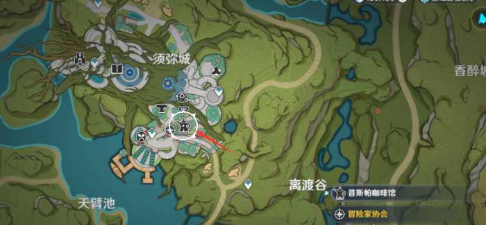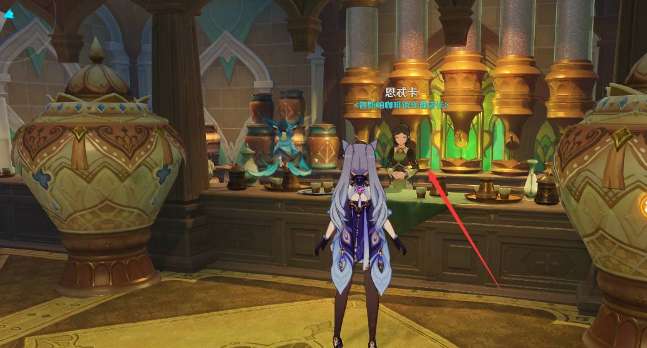 1、需要来到【须弥凯瑟琳】的上方,在【普斯帕咖啡馆】的老板处购买枣椰蜜糖食谱;