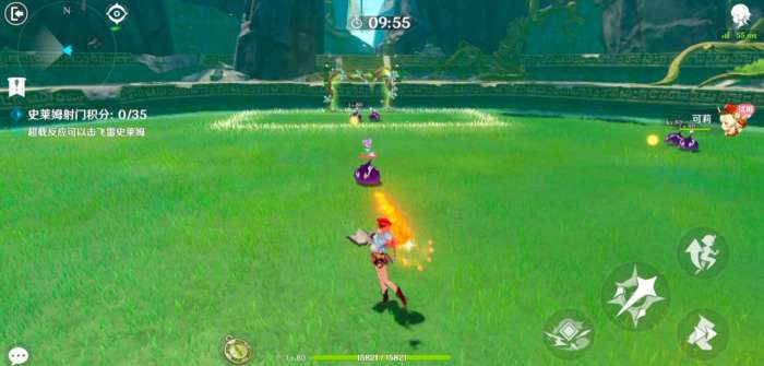 -按下普攻键,通过超载反应将雷史莱姆炸向球门。