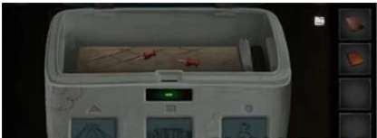2、用螺丝刀打开旁边的门,根据日记本上写的。去玩偶旁边的门里得到一辆玩具小车和一根蜡烛,然后把小车放进通风管里。