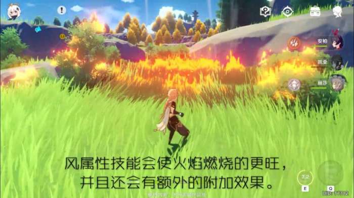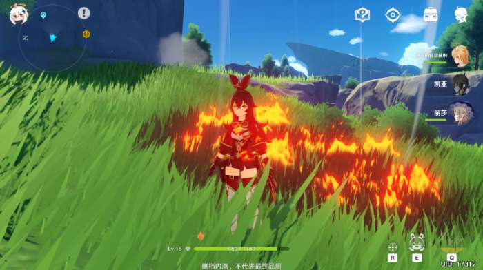 没错,会把草堆引燃,这在原神中也一样。当我们对着草地使用火属性的技能,就会让这片草地燃烧起来,靠近的话还会受到灼烧伤害。