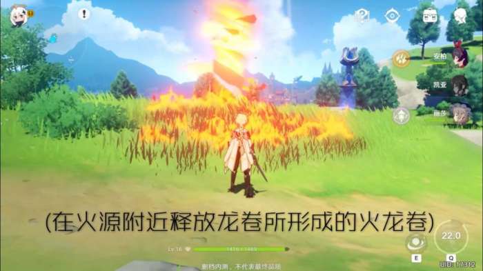 那么再试想一下,我们生火的时候为了让火烧的旺一些是不是会对着它扇风呢?在我们面前如果有正在燃烧的东西时,使用风属性的技能可以让火烧的更旺,整个龙卷风都可以被火焰染成红色。