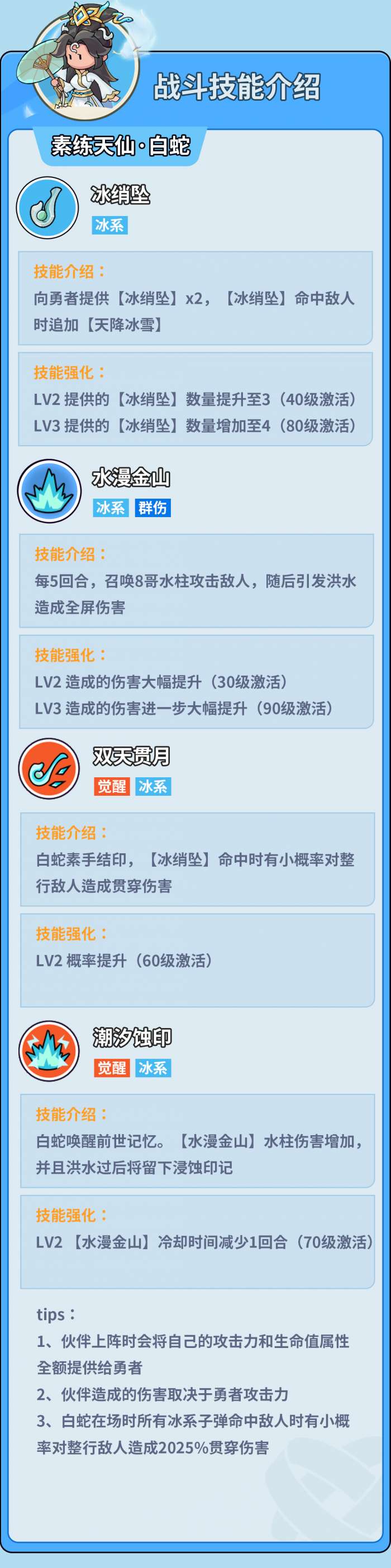3、白蛇在场时所有冰系子弹命中敌人时有小概率对整行敌人造成2025%贯穿伤害