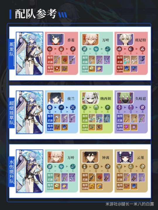 ①蒸发队:神里绫人,香菱,万叶,班尼特