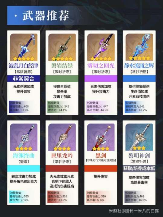 五星:波乱月白经津(专武),磐岩结绿,雾切,静水流涌之辉,(四把武器皆为限时祈愿)