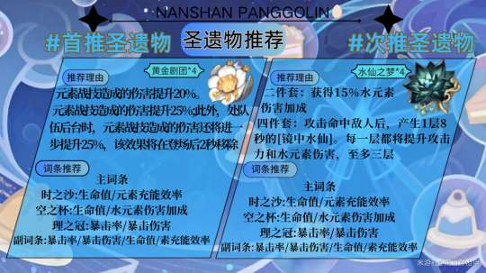 圣遗物推荐带:四件套黄金剧团或是四件套水仙之梦
