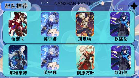 芙宁娜作为一个增伤的辅助/副C,实用的队伍还是非常广泛的,这里穿山甲也是给大家推荐两种配队:
